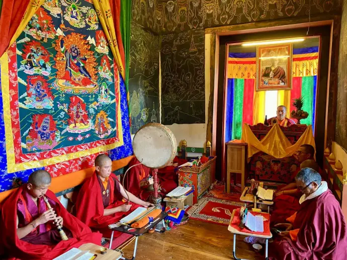 Today, on the auspicious occasion of Summer Nyilo, the sun reaches its highest point in the sky, pouring its longest rays across the valley. The mountains around Busa Wangdue Goenpa Dorling Dhensa 多傑林巴 are lush and green, the rivers nearby full and flowing —but more profound than the outer blossoming is the reminder to all of us: to turn inward and awaken the inner sun — the bright nature of wisdom that is within every being.