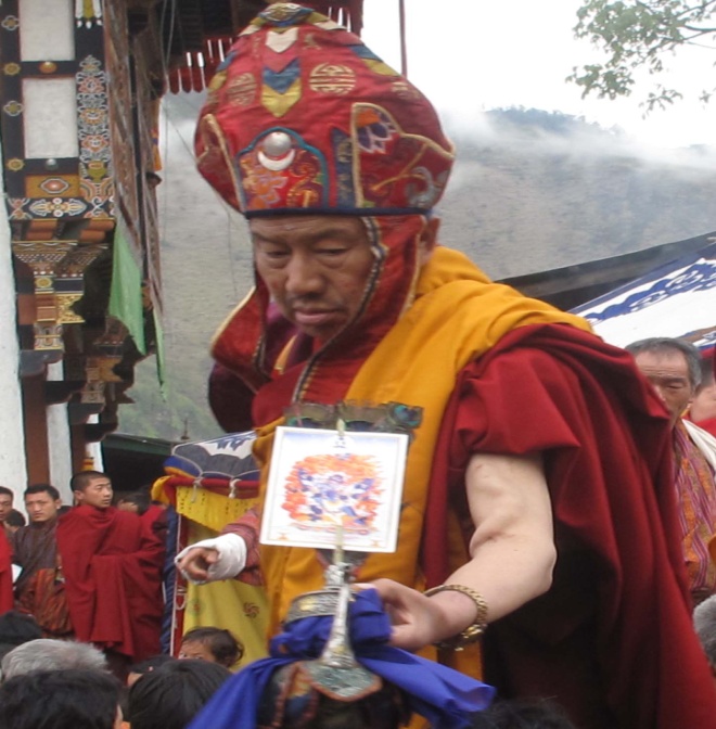 The Buli Trulku gave him some statues and a Choedril. (large bell). The statues are kept at the residence of Busa Trulku at Drangla while the Choedril is at Busa Wangdue Gonpa.